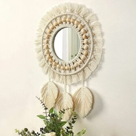 Le miroir en macramé avec pendentif feuilles, il peut ajouter une atmosphère intérieure élégante et simple à chaque pièce de votre maison aimante. Le design bohème unique offre une atmosphère charmante et mystérieuse, qui allie mode et décoration de lamaison.
