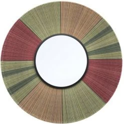 Le tissage à la main du coton qui constitue ce miroir attire le regard par son raffinement. Une structure métallique encercle la partie réfléchissante et rehausse ainsi un motif en vert olive, rouge et beige. Cette palette harmonieuse dynamise l’espace avec subtilité pour un effet assuré.