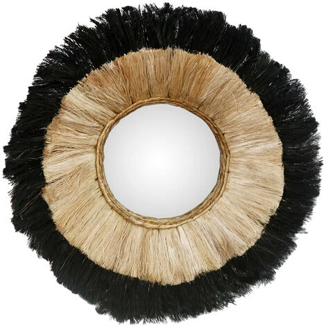 Miroir rond 70 cm en feuilles d’Abaca naturelles – Vahé –