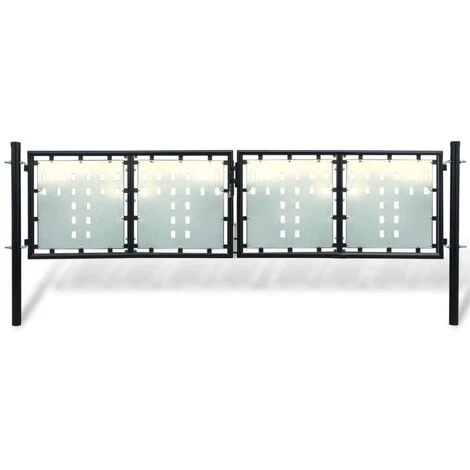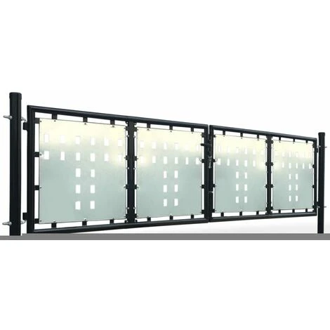 Ce portail de clôture sera une porte d’entrée pratique au style moderne pour isoler votre jardin du monde extérieur. Très stable et durable, le portail de clôture formera une barrière de sécurité pratique pour votre jardin, patio ou terrasse. Les tôles galvanisées avec des motifs de trous décoratifs renforcent le cadre, donc notre porte de jardin offrira un degré élevé de sécurité, tout en formant une fabuleuse entrée sur votre propriété. Fabriqué en acier robuste, le portail est enduit de poudre contre la rouille et la corrosion. Ce portail a deux poteaux solides avec des charnières robustes pour une installation facile et un système de verrou robuste avec trois clés correspondantes incluses également dans la livraison. Ce portail de jardin combine habilement style, robustesse, stabilité et résistance à la corrosion !