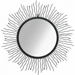 Notre miroir mural à l’aspect antique sera un complément pratique et décoratif à votre salle de bain, vestiaire ou chambre à coucher. Ce miroir mural est conçu avec un cadre en acier peint par poudrage dans un design d’éclat de soleil, qui ajoute une touche fantaisiste à votre intérieur. Grâce au trou pré-percé sur sa partie supérieure, le miroir peut être facilement fixé au mur.