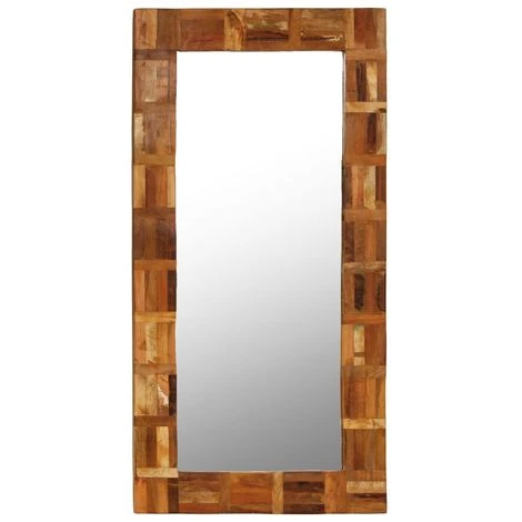 Notre miroir mural Ă l’aspect antique sera un complĂ©ment pratique et dĂ©coratif Ă votre salle de bain, chambre Ă coucher ou dressing. Le miroir est fait de bois massif recyclĂ© provenant de solives, de planchers et de poutres de soutien de vieux bâtiments qui sont dĂ©molis, et peut ĂŞtre composĂ© de diffĂ©rents types de bois comme le Sesham (bois de rose), pin, teck, hĂŞtre, chĂŞne, cèdre, bois de manguier, acacia, etc. Cela signifie que le bois de rĂ©cupĂ©ration conserve les caractĂ©ristiques de ces diffĂ©rents types de bois. Le bois rĂ©cupĂ©rĂ© est dĂ©jĂ vieilli, patinĂ© et sĂ©chĂ©, donc il ne rĂ©trĂ©cit pas et ne se plie pas. Les belles veines de bois rendent chaque meuble unique et lĂ©gèrement diffĂ©rent l’un de l’autre. Les signes d’usure et la structure du grain visible tĂ©moignent de la riche histoire du bois et donnent au miroir un aspect chaleureux et authentique. Chaque Ă©tape du processus est rĂ©alisĂ©e avec le plus grand soin, que ce soit le polissage, la peinture ou le laquage. Il est prĂŞt Ă ĂŞtre fixĂ© au mur grâce au crochet dĂ©jĂ installĂ© sur le panneau arrière. Remarque importante : Les couleurs peuvent varier d’un meuble Ă l’autre, ce qui rend chacun de nos miroirs unique. La livraison est alĂ©atoire.