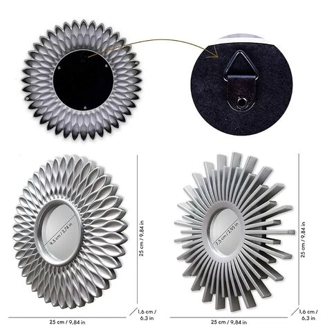COULEUR ARGENT Ces miroirs décoratifs mesurent 25*25*1,6 cm e d’une couleur argent vif. Ils sont donc bien assortis à toute une palette de couleurs, blanc, noir, vert, rose, rouge ou brun. Deux types de design de miroir, idéal pour le style de votre maison