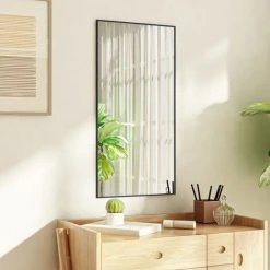 Ajoutez une touche d’esthétique minimaliste à votre décor avec ce miroir de porte pratique ! Il convient à la chambre à coucher, au salon, au couloir, partout où un miroir pourrait être nécessaire. Cadre robuste et stable : le cadre en aluminium assure robustesse et stabilité.Hauteur réglable : les crochets de porte inclus permettent différentes hauteurs du haut de la porte pour assurer une vue parfaite de vous-même.Fonction d’économie d’espace : en le plaçant sur la porte ou sur le mur, le miroir de dressing avec son design simple et précis peut aider à économiser de l’espace.Facile à installer : aucun assemblage requis. Grâce aux deux crochets inclus, vous pouvez facilement suspendre le miroir mural classique sur votre porte.