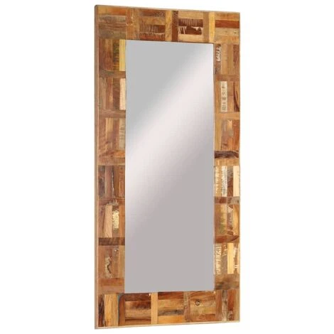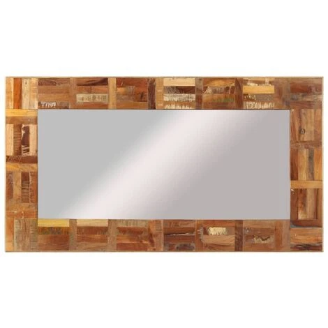 Ce miroir mural en bois d’aspect ancien est un supplĂ©ment pratique et dĂ©coratif Ă votre salle de bain, chambre Ă coucher ou dressing. Le miroir mural est fabriquĂ© Ă la main Ă partir de bois de rĂ©cupĂ©ration solide, une combinaison de bois rĂ©cupĂ©rĂ©s y compris le teck, le bois de manguier, le pin, le hĂŞtre, etc. Ces bois sont recyclĂ©s Ă partir de vieux bâtiments tels que des usines, des hangars et des bateaux. Cela en fait une excellente option Ă©cologique dans la fabrication de meubles. Comme chaque pièce est faite Ă la main, les couleurs varient avec de nombreuses nuances de bleu, vert, crème et parfois orange, rouge et rose rĂ©vĂ©lĂ©es. Cela signifie mĂŞme que chacune est unique ! Les signes d’usure et la structure visible du grain tĂ©moignent de la riche histoire du bois et donnent au miroir un aspect chaleureux et authentique. Chaque Ă©tape du processus est rĂ©alisĂ©e avec le plus grand soin, qu’il s’agisse du polissage, de la peinture ou du laquage. Il est prĂŞt Ă ĂŞtre fixĂ© au mur grâce au crochet dĂ©jĂ installĂ© sur le panneau arrière. Remarque importante : les couleurs varient d’une pièce Ă l’autre, ce qui rend chacun de nos miroirs unique ; la livraison est alĂ©atoire.