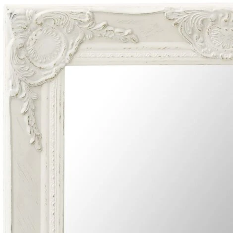 Ce miroir mural magnifique avec son cadre ornementé crée une atmosphère baroque dans votre salle de bain ou dressing. Ce miroir à l’aspect ancien présente un cadre en bois robuste qui est habilement travaillé pour arborer des motifs baroques. De plus, le bord conique donne au miroir un aspect unique. Le miroir peut être prêt à être fixé au mur grâce aux crochets déjà installés sur le panneau arrière.
