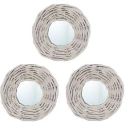 Ces miroirs, dotés d’un cadre en rotin véritable, dégage un charme vintage et sera une décoration parfaite pour votre maison. Il peut être utilisé dans le couloir, la salle de bain, etc. L’artisanat et la couleur naturelle rendent chaque pièce de nos miroirs en osier unique. Le miroir peut être facilement monté au mur. La livraison comprend 3 miroirs et accessoires de montage mural. Remarque importante : ces articles sont faits à la main. Les couleurs peuvent varier d’une pièce à l’autre, ce qui rend chacun de nos miroirs en saule unique. La livraison est aléatoire.