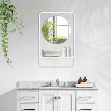 Miroir blanc rond et moderne avec étagère – HAGAN WHITE