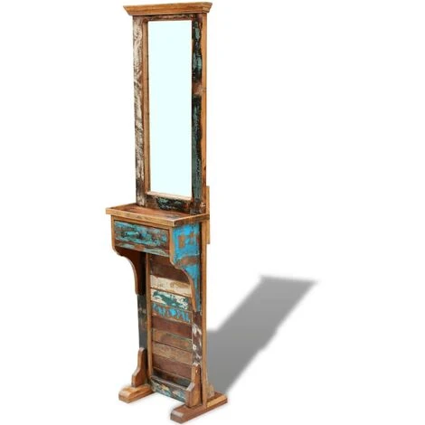 Un grand miroir d’entrĂ©e en verre fait d’un matĂ©riau beau et durable de bois de rĂ©cupĂ©ration qui prĂ©sente les caractĂ©ristiques de diffĂ©rents bois comme le teck, le bois de manguier, l’acacia, le bois recyclĂ©, le bois dur, etc., prĂ©sente un style rĂ©tro. Le tiroir coulissant sous le verre du miroir peut stocker beaucoup de vos objets de valeur. Les peintures colorĂ©es du cadre global ajoutent Ă son point de vue esthĂ©tique et c’est donc une dĂ©coration assez pratique et attrayante pour votre pièce.
