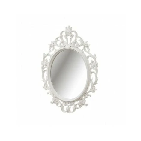 Miroir mural ovale avec moulures blanches en polypropylène.