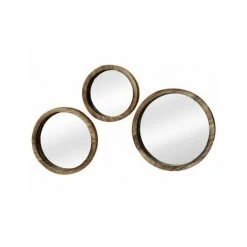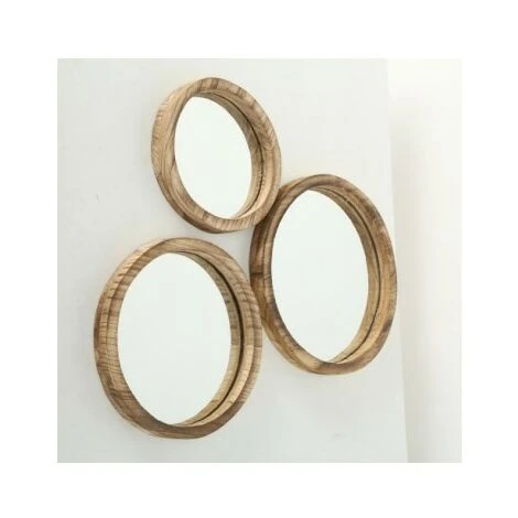 Set de 3 miroirs ronds en bois de palownia. Des miroirs de différentes tailles à disposer côte à côte pour un rendu déco élégant et chaleureux.