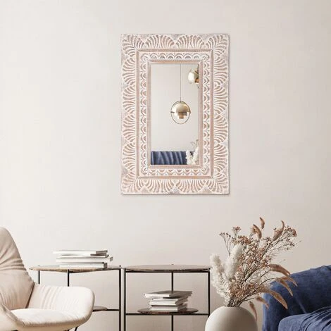 Chaque pièce est unique ! L’élégant miroir mural de WOMO-DESIGN est un accessoire élégant pour votre maison. Toutes les pièces individuelles du miroir sont coupées et traitées à la main. Le cadre en bois de manguier est très robuste et de grande qualité. Le matériau traité de haute qualité fait de ce miroir un accroche-regard garanti. Il confère à votre salon une ambiance chaleureuse et agréable.