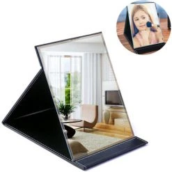 Miroir avec compartiment Ă bijoux en Bambou Bambou – Verre – Polypropylène A Poser Dim : 13,80 x 13,80 x 4,30 cm