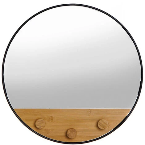 Miroir patère en Bambou Bambou – Verre – MĂ©tal A Suspendre Dimensions : Diamètre 41 cm – Profondeur 4 cm